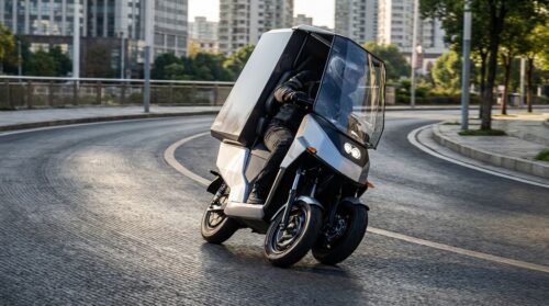 Pluto is building fully covered, scooter-sized three-wheel electric delivery vehicles designed for real-world delivery—not retrofitted after the fact. The result is a meaningful jump in performance over standard delivery bikes: